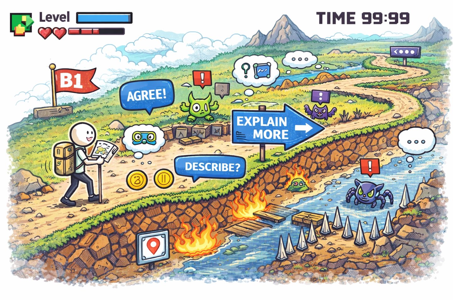 Reaching B1 is a major goal, but it is a long and heavy level to master. It is critical to learn it correctly because this is where you truly start communicating and functioning in the language.